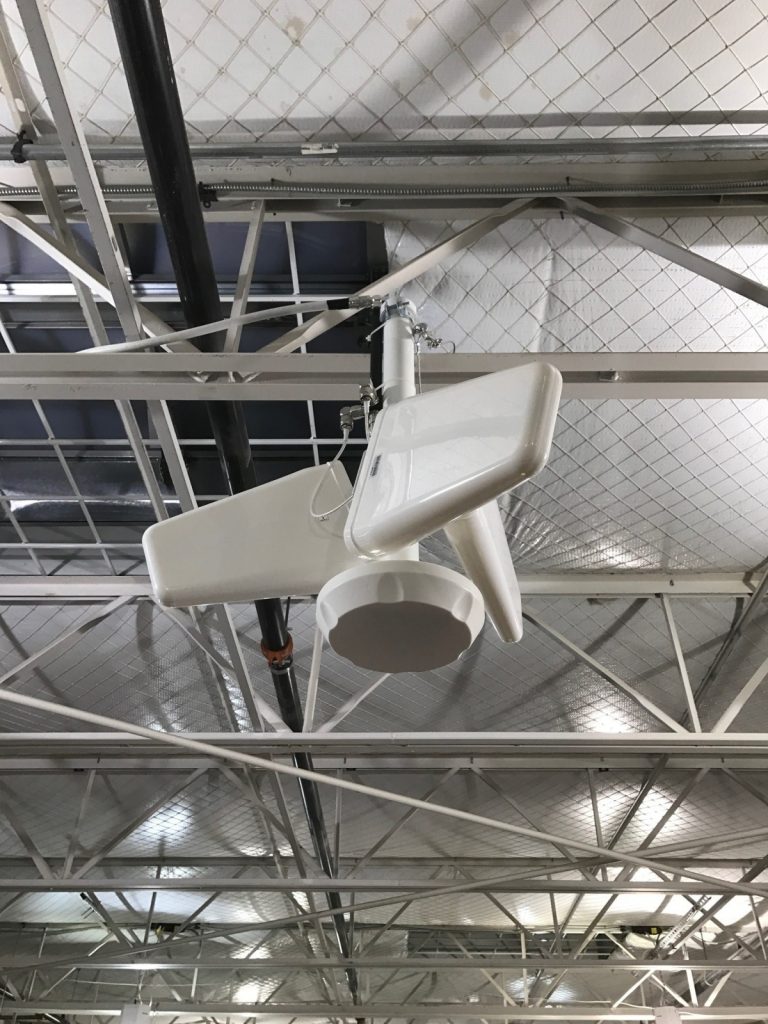 JDTECK’s proprietary antenna tree installed at a national warehouse shopping site. Propagates signal perfectly to the ground from 40ft up.